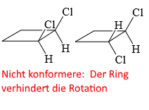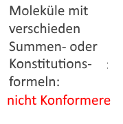 Zwei Moleküle sind Konformere wenn 1) sie nicht übereinanderlegbar sind 2) sie durch Rotationen von Teilen der Moleküle um ihre einfachen Bindungen in Übereinstimmung gebracht werden können.