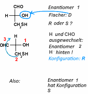 Die Nomenklatur R S Enantiomere gibt es erst seit 1966. Emil Fischer hatte seine eigene Methode zur Bezeichnung dieser beiden Enantiomere:
