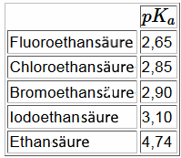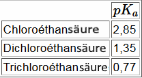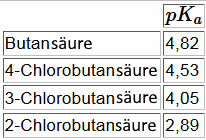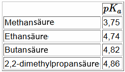 Erinnerungen: Je höher der $ pK_a $ ist, desto schwächer ist die Säure. Die Kohlenwasserstoffkette hat einen $ I+ $ -Effekt, der umso stärker ist, als sie lang oder verzweigt ist..