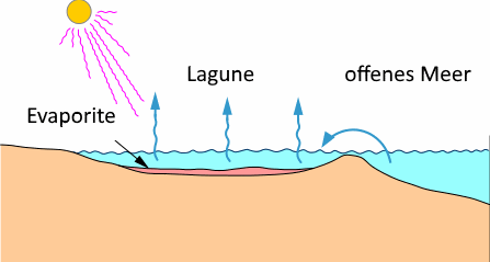 In der Natur geschieht die Bildung von Verdampfermineralien unter anderem in großen Lagunen am Meer, Lagunen, die in Dutzenden oder Hunderten von Quadratkilometern gemessen werden, in Gebieten, in denen die Verdunstung den Regen überwiegt.