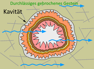 Es gibt alle Arten von wässrigen Lösungen, die in den Gesteinen der Erdkruste zirkulieren. Sie können aus warmen Bereichen des Mantels stammen und aus überschüssigem Wasserdampf eines Magmas bestehen. Oder es kann Wasser sein, das in tiefen sedimentären Becken eingeschlossen wurde. Die schönen Agathe, die wir in den Mineralstoffgeschäften kaufen, wurden durch den Niederschlag von Mineralien aus einer Lösung in einer Felshöhle gebildet.