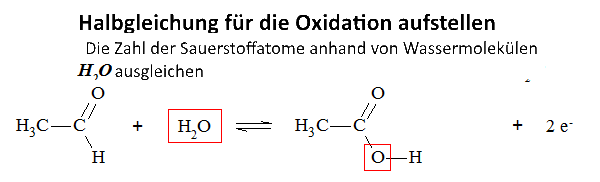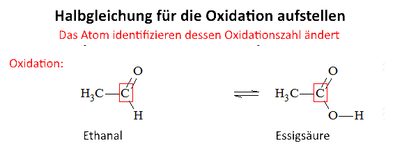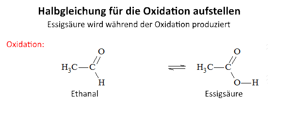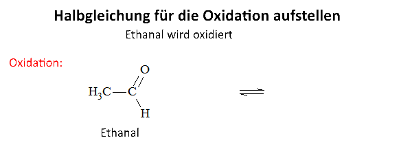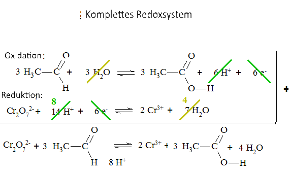 Untersuchen wir die Reaktion von Kaliumdichromat auf Ethanal (Acetaldehyd) in Gegenwart von Schwefelsäure: