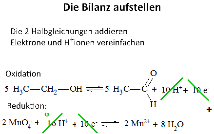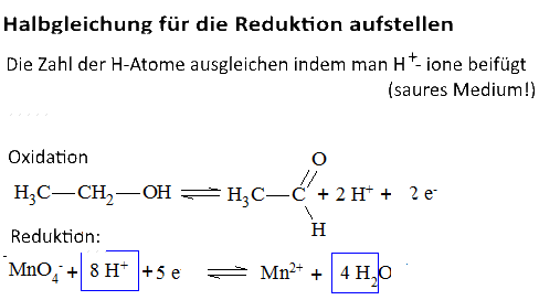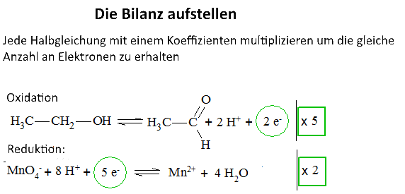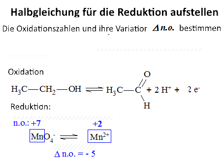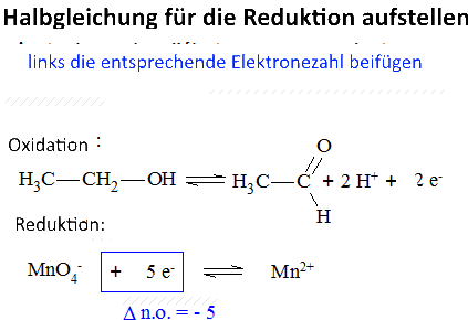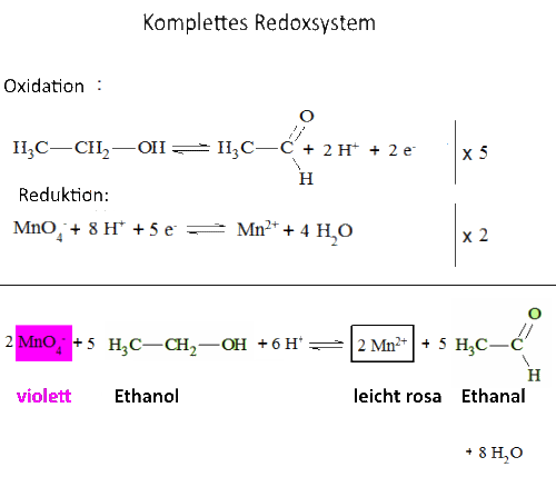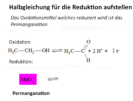 Untersuchen wir die Reaktion von Kaliumpermanganat auf Ethanol in Gegenwart von Schwefelsäure: