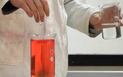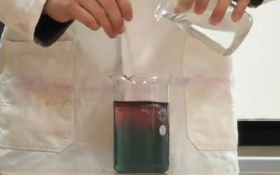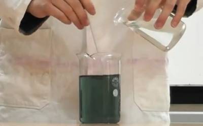 A small quantity of chlorhydric acid is added. The beaker is shaken.