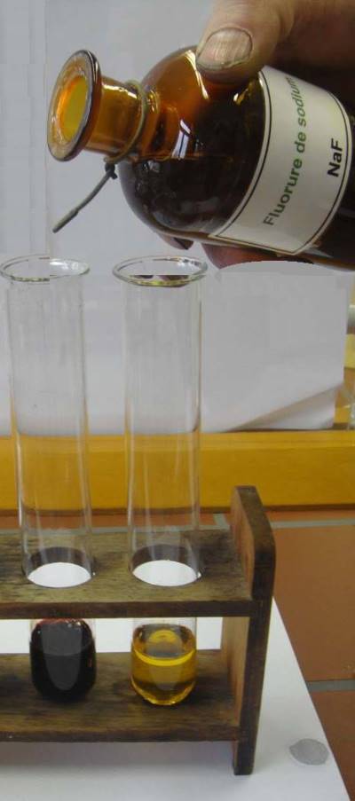 Now a solution of sodium fluoride is added (from left to right):