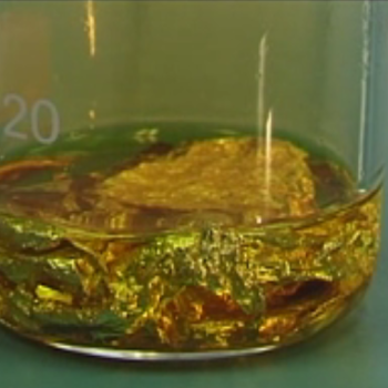A gold leaf is introduced in a a mixture of nitric and chlorhydric acid (aqua regia)...