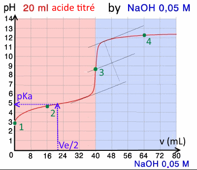 $V_e$ $=$ $40\;mL$ $c_{acide}$ $=$ $\frac{40\cdot 0.05}{20}$ $=$ $0.10M$