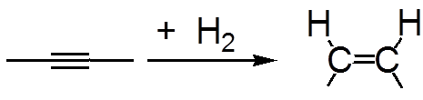 $H_2 $ adds to an alkyne in the presence of a palladium $Pd $ catalyst or by reacting with $ Na$ in $ NH_3 (l) $