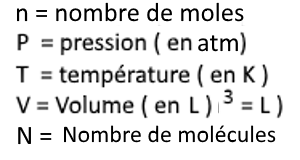Loi des gaz: pression ( bar ) nombre de moles, nombre de molécules, volume et température